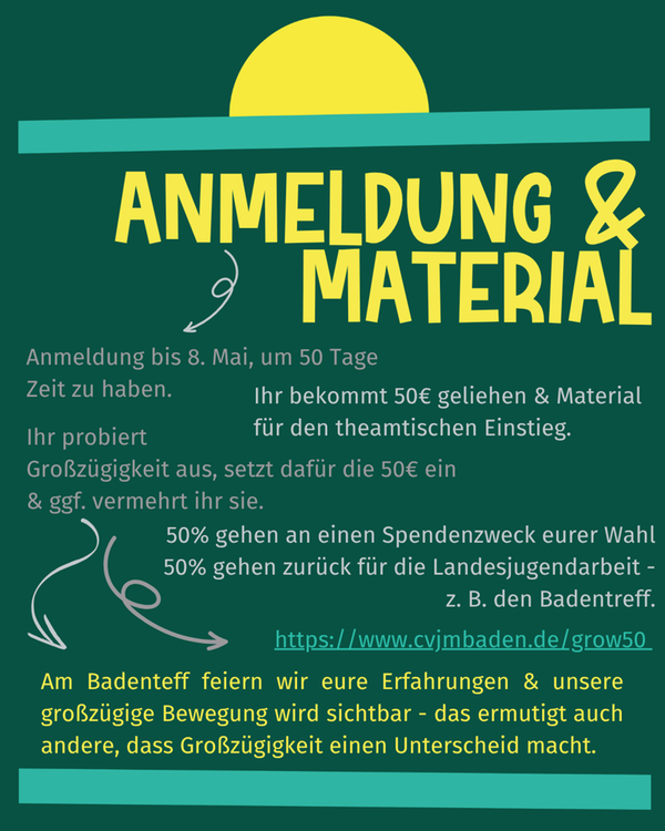 50% gehen zurück an den CVJM. Damit ermöglichen wir Aktionen wie den Badentreff, die Unterstützung von euch vor Ort & Freizeiten wie KonfiCastle, MaxxCamp, Snow and Fun etc.